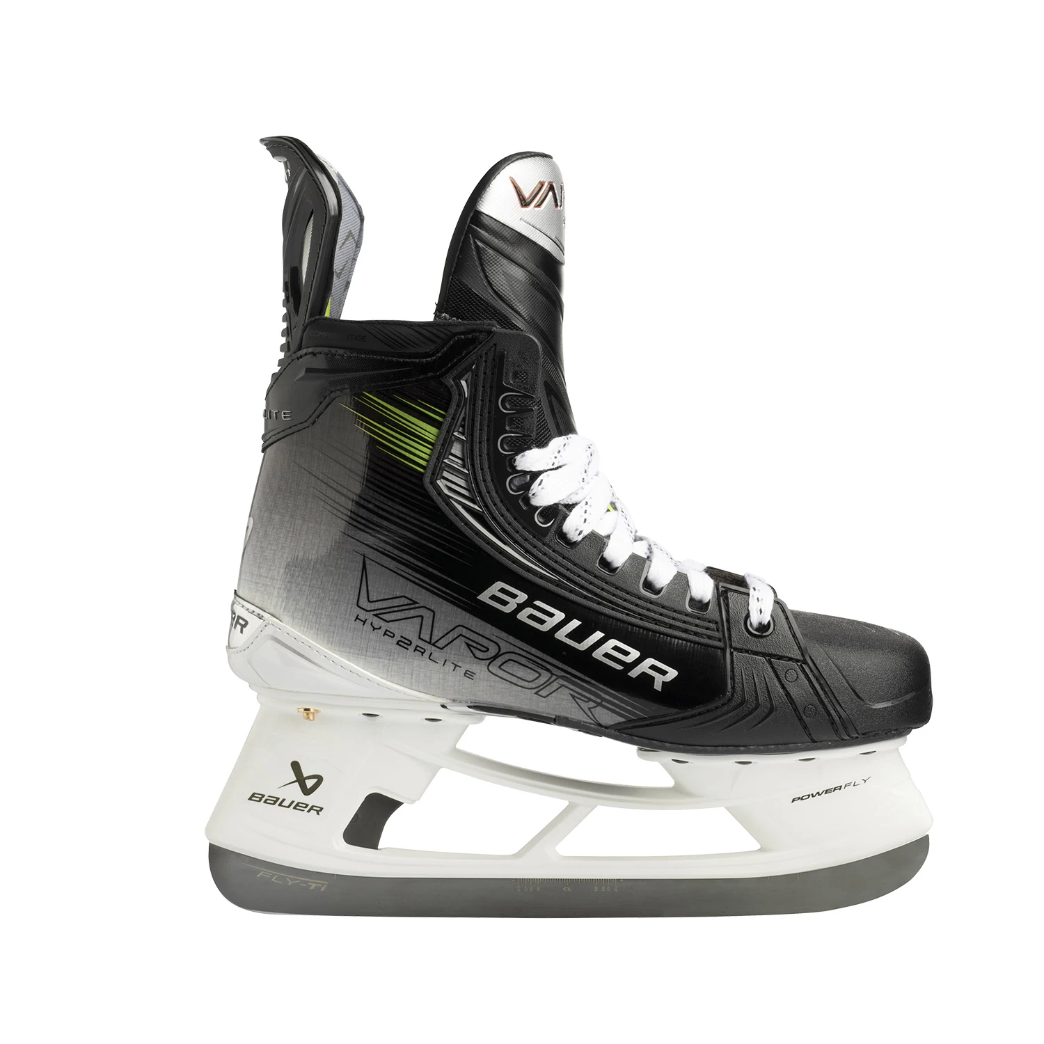 Der Bauer Vapor Hyperlite 2 Eishockeyschlittschuh ist das neue Top-Modell der Marke Bauer. Er ist ein extrem leichter Schlittschuh, der mit einer flexiblen Sohle und einem harten Top dennoch für maximale Power sorgt. Dank der Aerolite 2.0 Sohle und dem neuen Powerfly Holder kannst du deine Kräfte optimal umsetzen. Die Zunge ist aus Aerolite 2.0 gefertigt und besitzt einen zusätzlichen Filz gegen Einschneiden.
