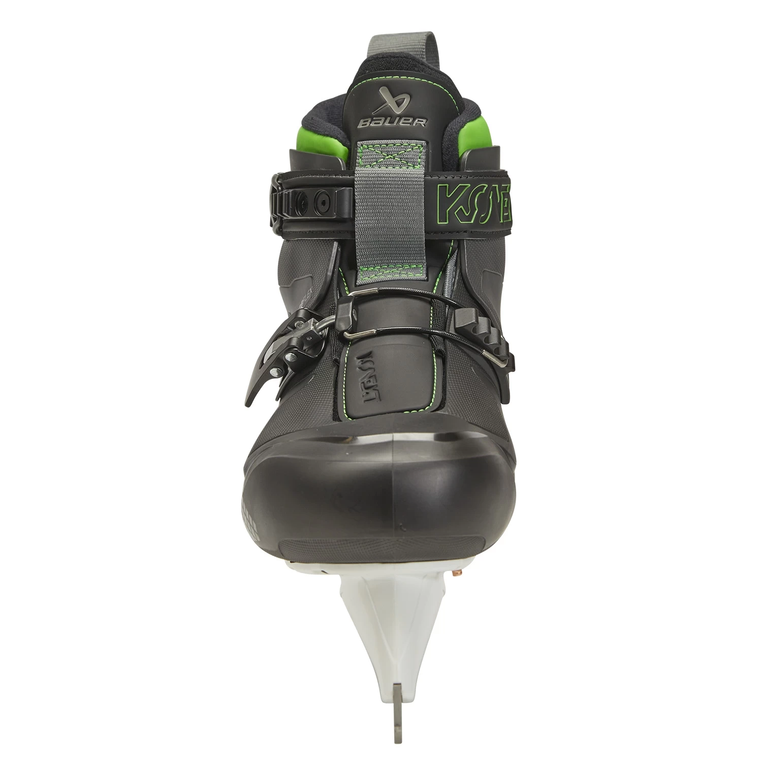 Der KONEKT Goal Skate verfügt über einen herausnehmbaren Innenschuh. Sowohl die Schale als auch der Innenschuh sind GRILAMID thermoformbar und können entsprechend an den Fuß des Spielers angepasst werden. Das neue Top Power Strap Combo Schnallen-Verschlusssystem sorgt für guten Halt und erleichtert zudem das An- und Ausziehen des Schuhs. Der Skate ist mit dem verbesserten LS Pulse Eisen ausgestattet. Nur in ganzen Größen verfügbar.
