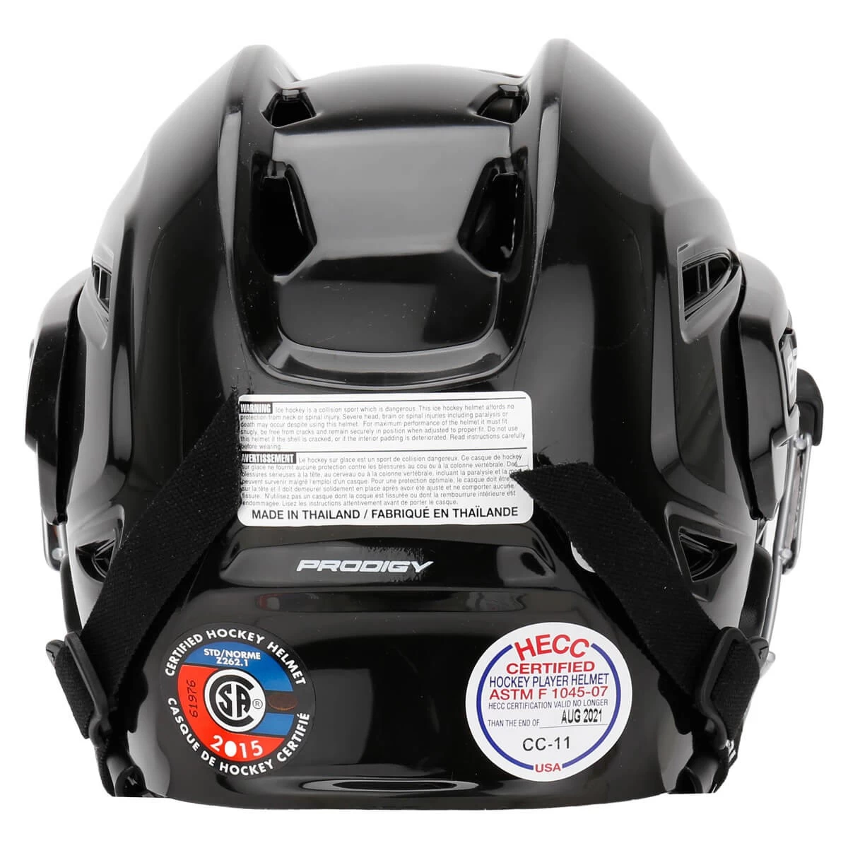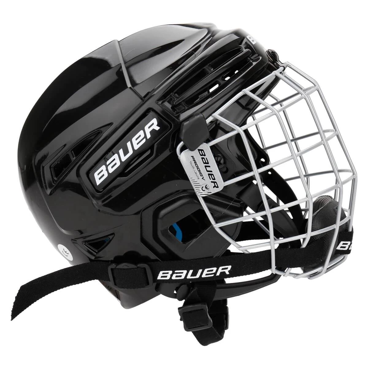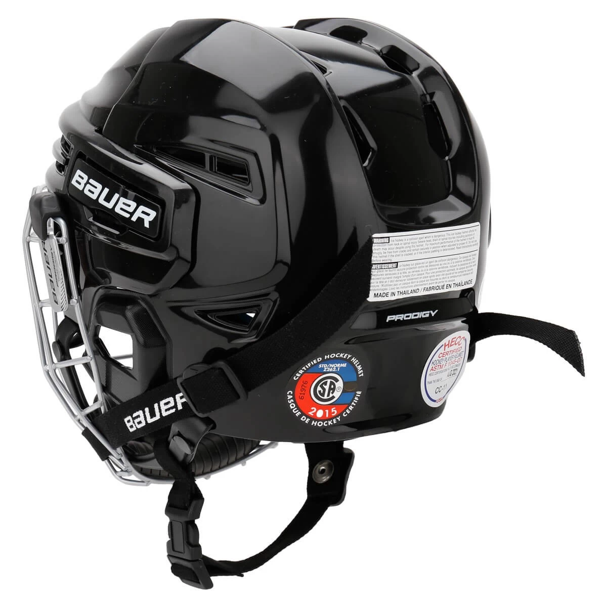 Der Bauer Prodigy Combo Helm Bambini gehört zu der neuen und beliebten Prodigy Serie von Bauer. Diese Serie wurde extra für kleine Kinder entwickelt. Der Bauer Prodigy Helm besitzt eine zweilagige Schaumstoff Schicht um einen besseren Schutz zu bieten. Außerdem ist er relativ leicht und bequem. Der Helm ist wie jeder andere Helm CSA, HECC und CE zertifiziert. Die verstellbaren Clips am Helm ermöglichen es den Helm auf die perfekte Größe einzustellen.
