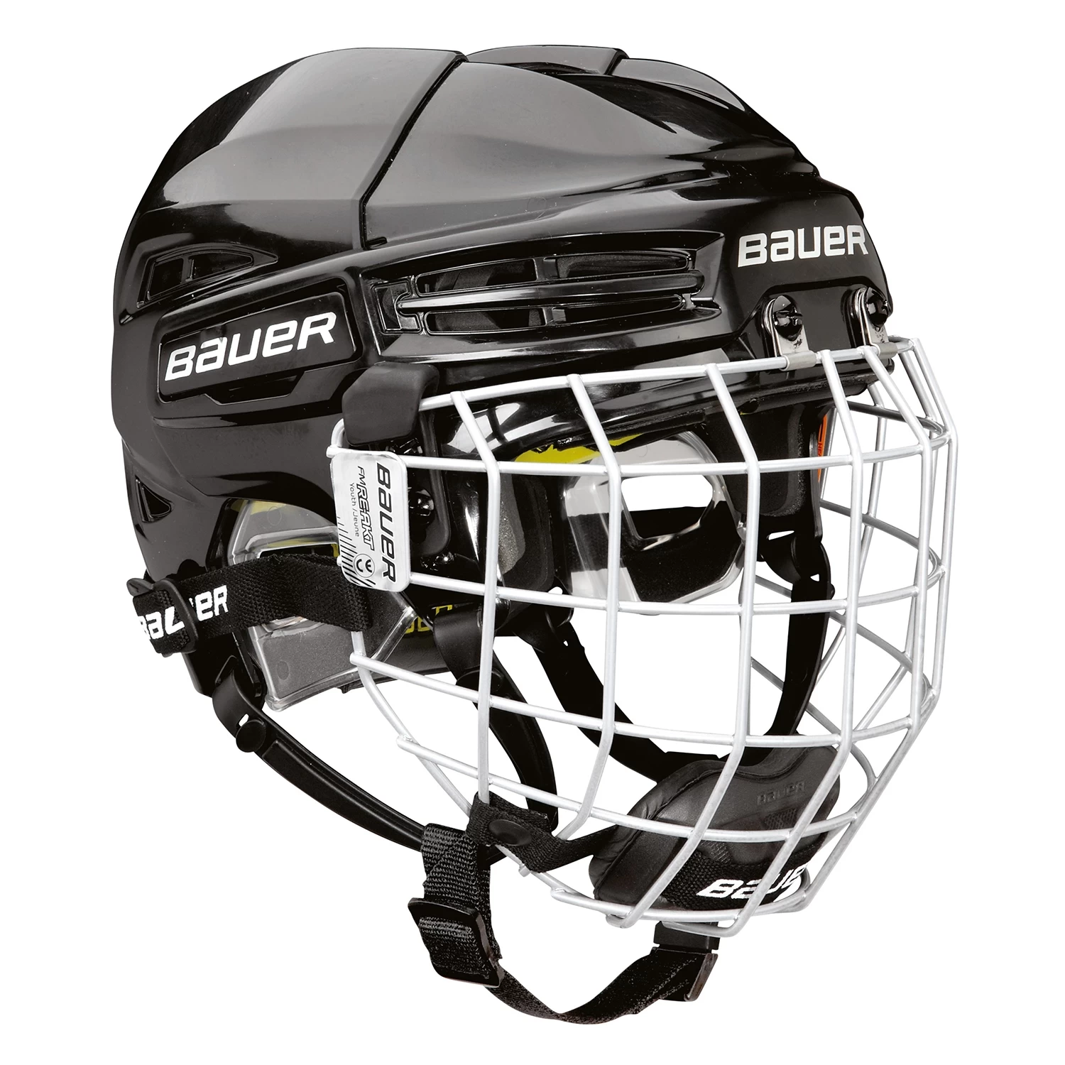 Der Bauer RE-AKT 100 Eishockeyhelm bietet hervorragenden Schutz und Komfort Kinder. Mit seinem schnell öffnenden Kinnriemen lässt er sich einfach und bequem an- und ablegen. Der Helm verfügt über ein Suspend Tech Innenfutter sowie einen dreischichtigen aufprall-absorbierenden Schaumstoff, um den Kopf des Spielers bestmöglich zu schützen. Die gefederte Polsterung am Hinterkopf sorgt für zusätzliche Stoßdämpfung und eine perfekte Passform. Die zweiteilige Helmschale garantiert eine optimale Verteilung der Aufprallenergie und maximale Sicherheit.
