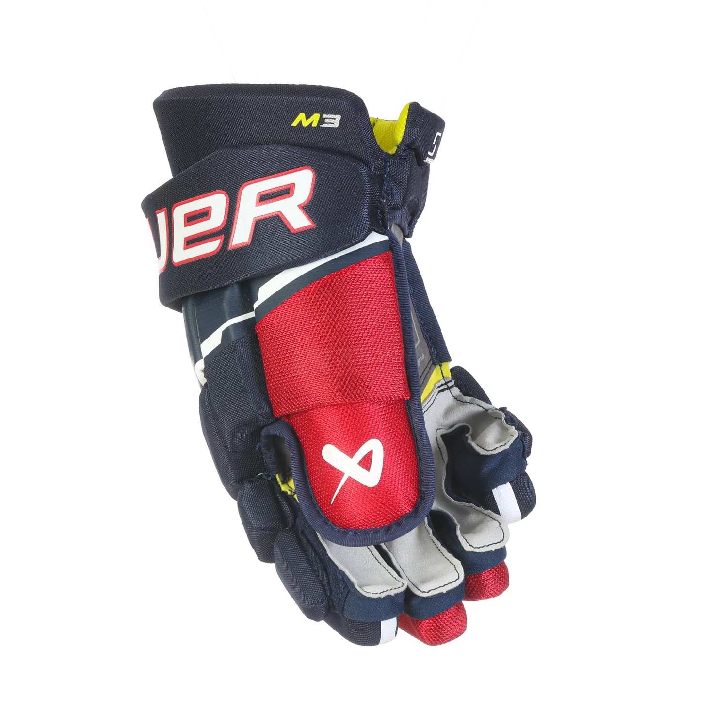 Basierend auf der anatomischen Supreme Passform liegt der Fokus beim Bauer M3 auf Komfort. Die CONNEKT-Innenhand in Verbindung mit ergonomischer Passform und einem zweiteiligen Flex-Daumen ermöglichen eine unglaubliche Verbindung zum Schläger. Als Fingerschutz bietet der M3 MD-Schaum + PE-Einlage für maximalen Komfort.