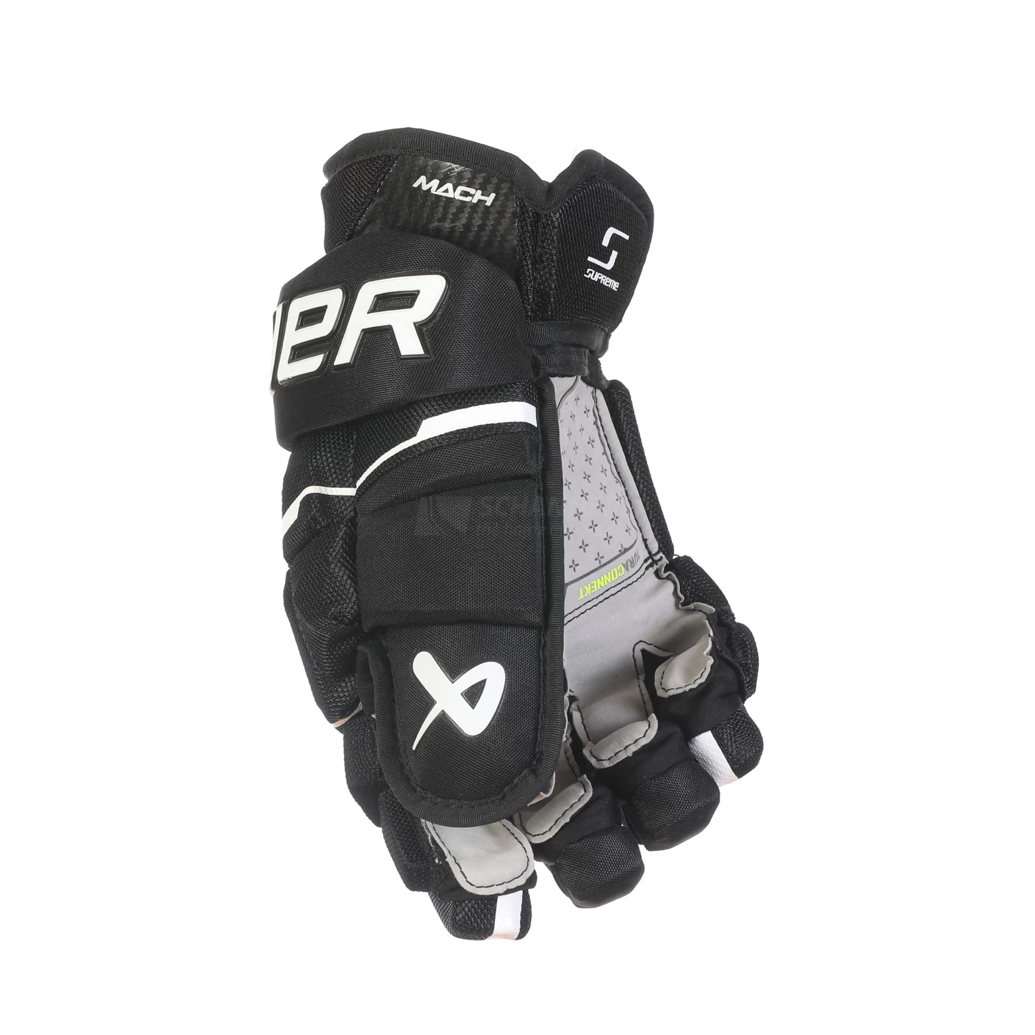 Die neue AMP-Manschette des Bauer Supreme MACH Handschuhs schützt dein Handgelenk und hält es in allen Situationen bedeckt. Die neue Konstruktion mit ergonomischer Passform und einem dreiteiligen Flex-Daumen ermöglichen eine unglaubliche Verbindung zum Schläger. Der Shot Boost-Finger verbessert das Gefühl und die Stick-Kontrolle beim Schießen.
