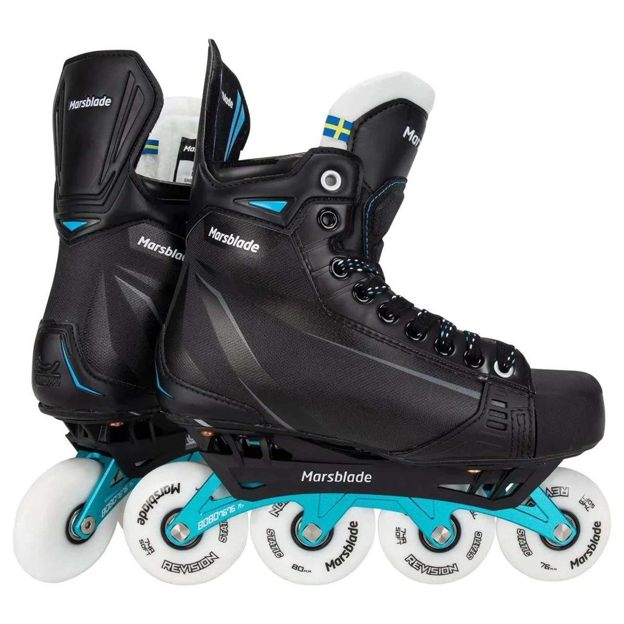 Die Marsblade R1 Kraft Team Skates bieten High-End-Leistung und Komfort zu einem tollen Preis. Marsblade verwendete seine Flow-Motion-Technologie im R1-Rollenhockey-Chassis für seine erstklassige Leistung, Geschwindigkeit und Agilität, mit der herkömmliche Chassis nicht mithalten können.